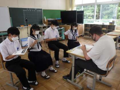 英語リーディングテスト(3年英語) 公開日 2022/09/29 更新日 2022/09/29 校長室から 3年生の英語では、ALTとリーディングテストを実施しています。 教室でしっかり練習してから、いよいよ本番です。 緊張ぎみですが、結構発音よくしっかり話せている子が多かったです。 小学校でも英語科が始まり、以前とは比べ物にならないほど、人前で堂々と話せているなと感じました。