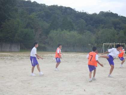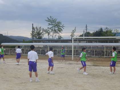 アルティメット楽しいよ(1年体育) 公開日 2022/10/04 更新日 2022/10/04 校長室から 運動場から、とても楽しそうな歓声が聞こえてきました。 昨年まで赴任していた小学校でよく聞いたにぎやかさです。 なんだろうと思わず見に行くと、1年生男子の体育の授業で先日紹介したアルティメットのゲームをしていました。 思わず声が出る夢中になれるゲームのようです。