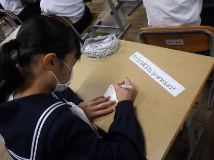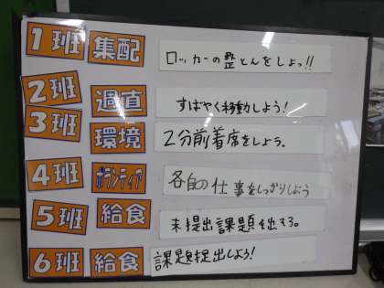 朝の会で班ごとのめあてを立てています(1年生) 公開日 2022/10/06 更新日 2022/10/06 校長室から 1年生の朝の会では、毎朝班ごとに1日の生活のめあてを立てて、生活をしています。 自分たちでめあてを立てることで改善点を自分たちで見つけて生活させるねらいがあります。 「マイナスな発言をしないようにしよう」と立てた班の子が、うっかりマイナス発言をして、担任から指摘されいる場面をみて、微笑ましいなあと思いました。 こうやって、徐々に学級力の向上を図っています。