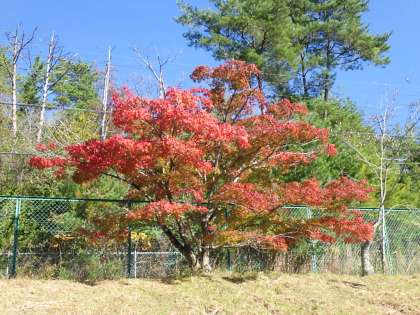 雄大な猿投山をバックに、これからしばらく紅葉が楽しめそうです。