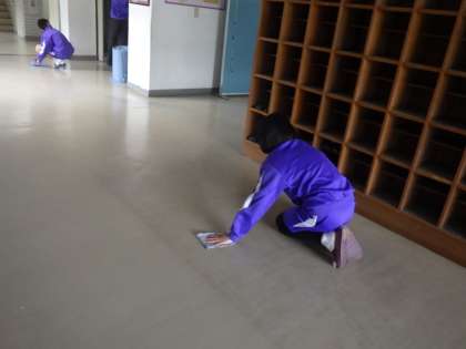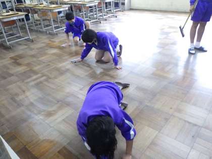 清掃時、本校の生徒のぞうきん掛けはとても丁寧です。