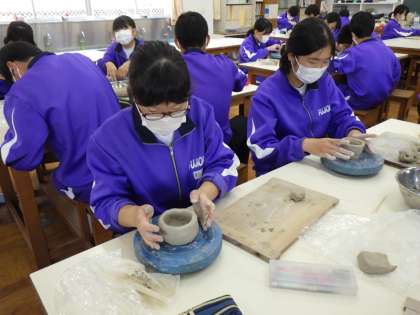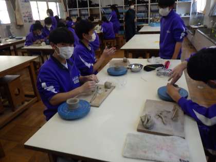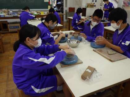 2年生の美術は、陶土をでマグカップづくりをしています。