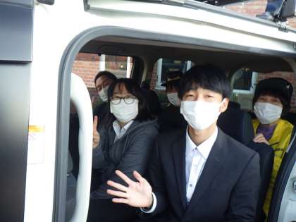 部活動のないテスト期間に合わせて、本校の教員が豊田警察署が組織する豊田市少年補導員会のみなさんと「よすが号」(青パト)の乗って下校指導をしました。