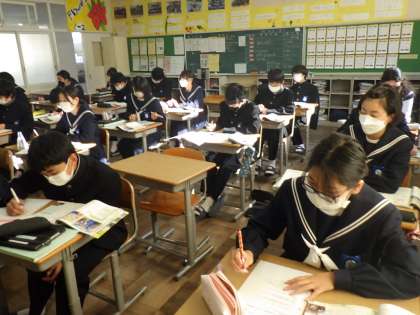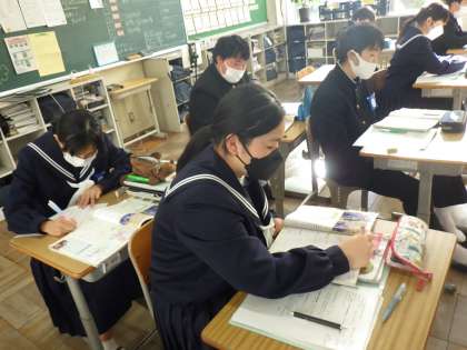 後期中間テスト間近です(1年社会) 公開日 2022/11/15 更新日 2022/11/15 校長室から 1年生の社会では、地理のヨーロッパの学習をしています。 経済指標「GDP=国民総生産」「GNI=国民総所得」の意味についても解説がありました。 テスト前ということもあり、生徒たちは熱心にノートを取りながら、理解に努めていました。 難しいよね…。でも社会のワードは日頃から、ニュースを見るようにしていると頭に入ってくるよ。がんばって!