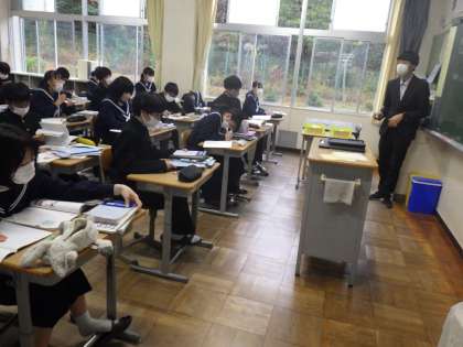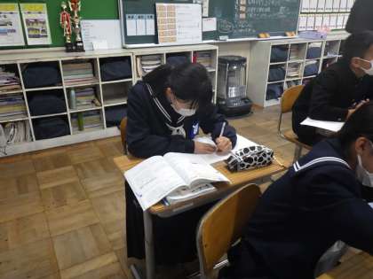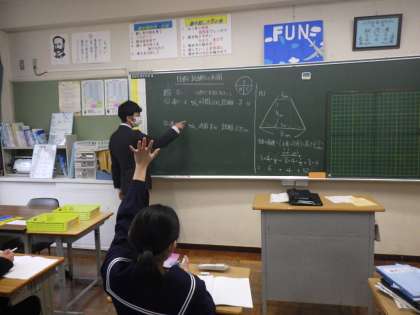 比例と反比例の利用(1年数学) 公開日 2022/11/29 更新日 2022/11/29 校長室から 1年生の数学では、比例と反比例を学習しています。 今日は、これまでに習ったことを利用して、練習問題を解きました。 問題のレベルも学習の様子も、いつの間にかすっかり中学生だなと感じました。 時折、幼い行動もありますが、4月と比べるとすっかり中学校に適応して活躍する姿をみて、とても頼もしく感じました。