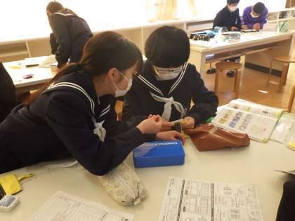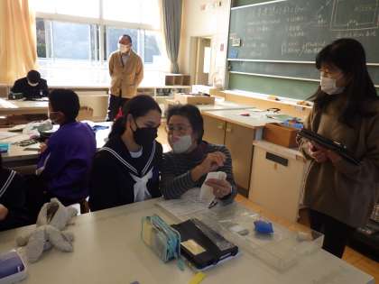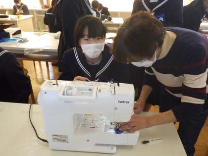 1年生の家庭科では、7名の地域講師の方々にミシン補助をしていただきました。地域学校共働本部の学習支援として、毎年お手伝いしていただいています。本日は、7回目の学習支援となり、最終日です。