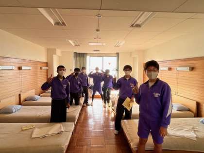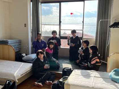 入所式のあとは、シーツをもらって、ベッドメークです。オーシャンビューの素晴らしいお部屋です。