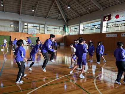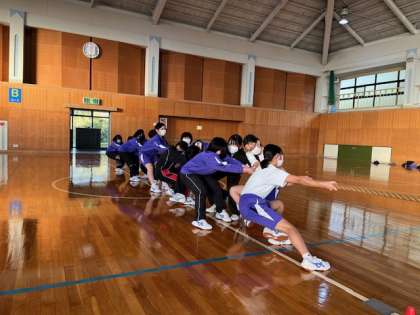 ドッチビー、八の字跳び、綱引き、リレーをして楽しみました。