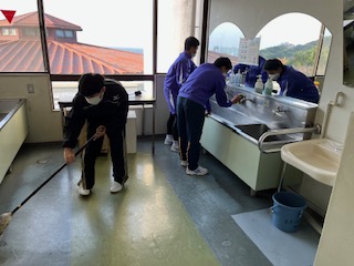 ?朝食のあとは、清掃活動です。来たときよりも美しくを合言葉に頑張りた。