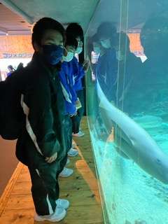 時間通りに南知多ビーチランドに着きました。班ごとに自由見学したあと、イルカショーを堪能しました。