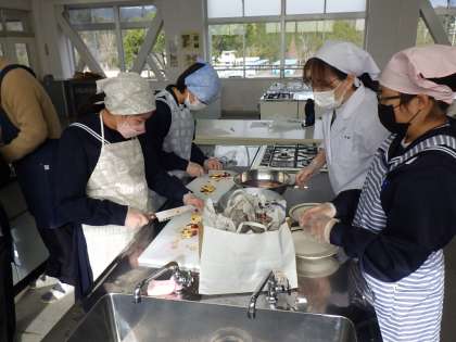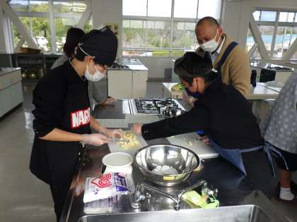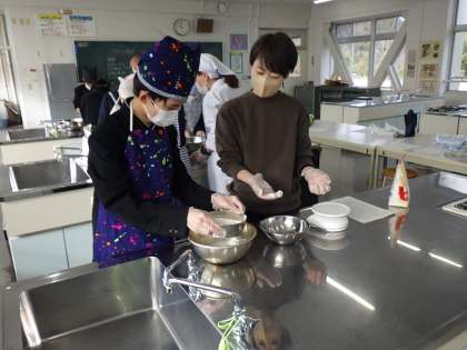 さつまいものカップケーキ作り(1・2学級) 公開日 2022/12/20 更新日 2022/12/20 校長室から 1・2学級では、収穫したさつまいもを使用して、さつまいものカップケーキ作りに挑戦しました。 手際よく作業していました。さらに、学級の友だちと声をかけながら協力して調理している姿も大変良かったです。 一緒に調理をした先生が「おいしかった!」と生徒以上に喜んでいました。