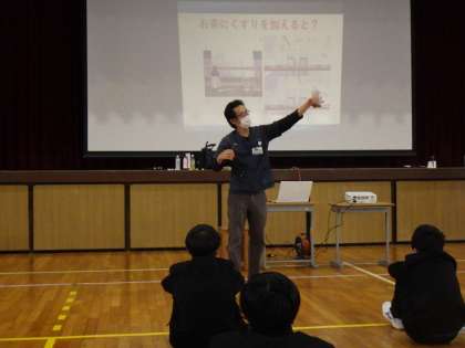 薬物乱用防止教室(2年生) 公開日 2022/12/22 更新日 2022/12/22 校長室から 2年生は、学校薬剤師の田中先生を招いて、「薬物乱用防止教室」を実施しました。 シンナー・大麻の危険薬物の心身への影響を知るとともに、医薬品の正しい服用方法を学びました。 田中先生には、薬の服用の仕方など実験を交えて、分かりやすくお話いただきました。ありがとうございました。