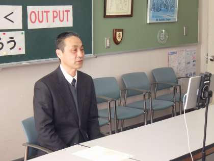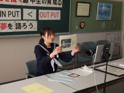 オンラインによるダービーシャー中学との交流で発表した流暢な英語を披露しました。