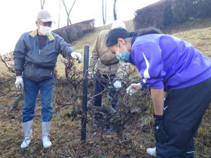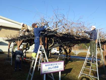 冬季藤棚剪定をしていただきました 公開日 2023/01/24 更新日 2023/01/24 校長室から 1月15日(日)木瀬里山を守る会のみなさんに冬季の藤棚剪定をしていただきました。 冬の間にきちんと光が差し込むように剪定をすることで、しっかりと花をつけるそうです。 今回は、1・2年生のボランティアも参加してくれました。 一緒に作業をすることで、地域の方々とふれあい、地域を守る方々の思いに触れることができました。 ありがとうございました。