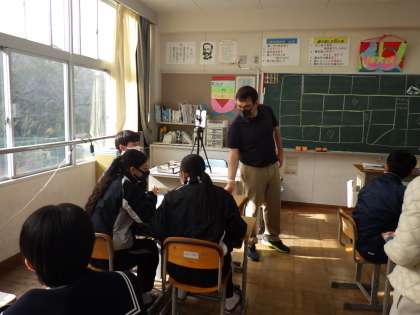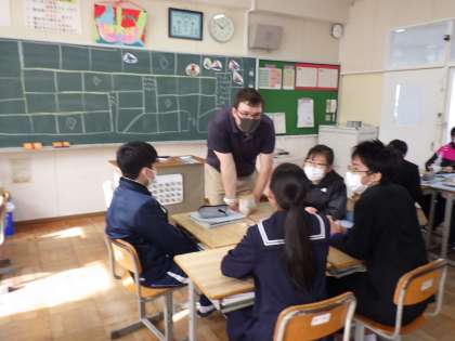 3年生の英語では、ALTからの質問に答え、ポイントを得るゲームを楽しみました。