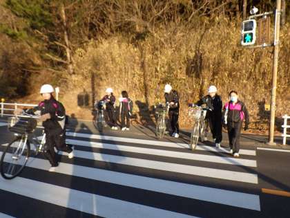 押しボタン信号では、車が通りすぎるまでボタンを押すのを待ったり、横断を小学生に譲ったり、優しさあふれる藤中生を見かけて、とてもうれしい気持ちになります。