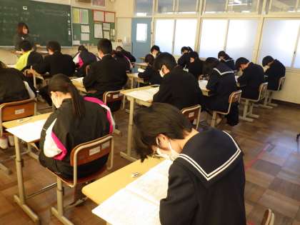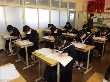 学年末テストスタート 公開日 2023/02/15 更新日 2023/02/15 校長室から 学年末テストがスタートしました。 本日から1・2年生が、明日からは全学年が学年末テストに臨みます。 それぞれこれまでの学習の成果が十分に出せるよう精一杯取り組んでほしいと思います。 外はまだまだ寒々しいですが、夜明けが早まり、日没も遅くなってきました。春はもうすぐそこまで来ていると感じるこの頃です。
