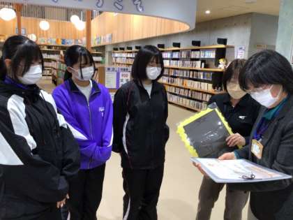 3年生は、夏休み明けから取り組んでいる総合的な学習の授業で学んだ、藤岡地区の「47災害」を小学生の皆さんや地域の方々、後輩にも知ってもらおうと、紙芝居やパンフレット、ポスターなどを作成し、飯野小学校、藤岡支所・交流館、藤岡中学校にそれぞれ展示の依頼をしました。小学校では、3月の上旬ごろ、校長先生から児童の皆さんへ紹介いただけるそうです。また、藤岡交流館では、次号の藤岡だよりに寄贈の様子が掲載されるそうです。