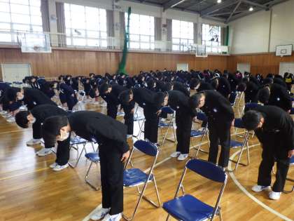 入試明けの短い練習期間でも、諸所授与の動きの確認など、一通り通すことができました。当日参加しない2年生の生徒を保護者役にして参加してもらいました。来年度の卒業式をイメージしてもらうためです。