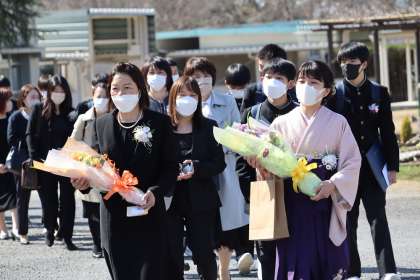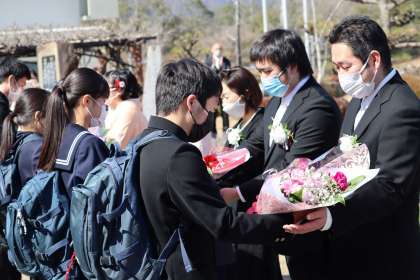 春の空気が広がる中、門出送りをして、卒業生を見送りました。