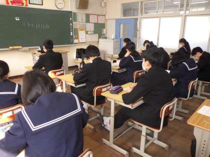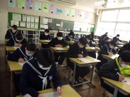 学習コンクール社会(2年) 公開日 2023/03/09 更新日 2023/03/09 校長室から 2年生が、学習コンクール(社会)行いました。 社会科は、5回目になるそうです。 何人かの生徒に感想を聞いてみました。 「今回はしっかり練習できたのでよかった」「マークシートでよかった」「何問か間違えてしまった」など、それぞれの反省がありました。 スモールステップで現在の自分の力を把握する機会として、上手に学習コンクールを活用しているようです。