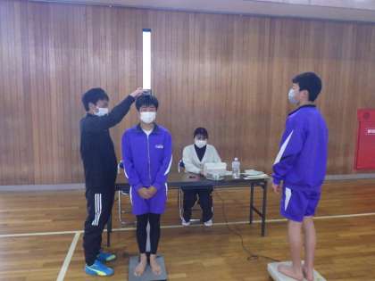 現在、各学年で身体測定を実施しています。