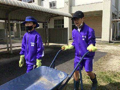 一輪車で草を運ぼうとした先生を見て、1年生の2人は「ぼくがやります」と進んで声をかけてくれました。プールの裏の草置き場まで、4往復もしてくれました。やる気がすばらしかったです。