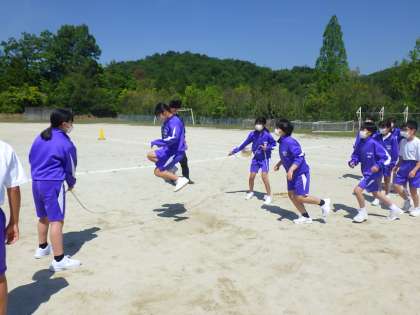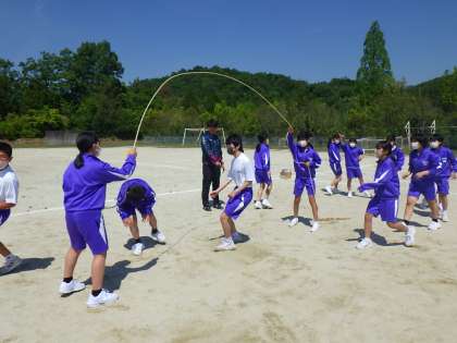 体育祭の練習始まりました 公開日 2023/05/10 更新日 2023/05/10 校長室から 今週火曜日より体育祭日課となり、練習が本格化しました。 体育の授業では、生徒会種目の長縄跳び(八の字跳び)の練習をしていました。 掛け声をかけながら、励まし合い一生懸命練習に取り組んでいました。 宿泊学習でも練習をしたので、かなりハイペースで回しても跳べていました。 たっぷりの日ざしを浴びて生き生きと活動する姿はいいものです。