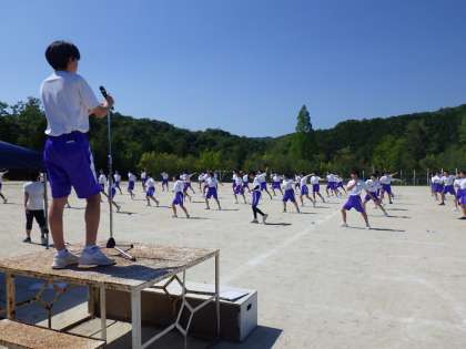縦割り団ソーラン練習風景(全校) 公開日 2023/05/11 更新日 2023/05/11 校長室から 体育祭のメインは、なんといっても伝統の藤中ソーランです。 今年は、縦割り団による藤中ソーランが3年ぶりに復活します。 それぞれの団が優勝目指して、練習に入っています。 3年生の子たちが、一生懸命に取り組む様子に1、2年生も応えてとてもいい雰囲気です。 「ようやく戻ってきたなあ」と実感する瞬間でした。