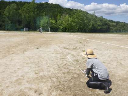 PTA役員のみなさまに保護者駐車場となる第2グラウンドにライン引きをしてもらいました。