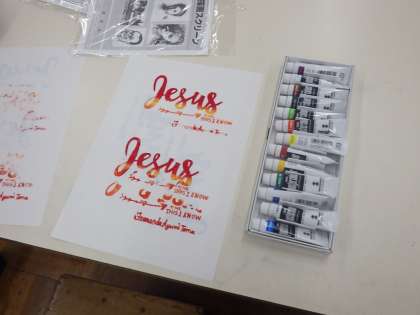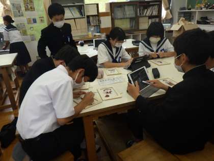 学習用タブレットで画像を検索して、図柄を決めて、現在は試し刷りをおこなっています。