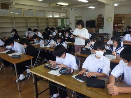 今年から、全校集会で各員会からのお知らせをすることになり、発表のある委員会はその準備をしていました。