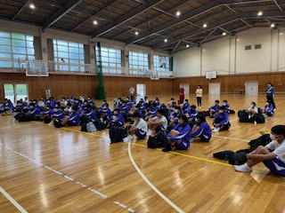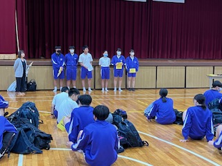あいにくの空模様ですが、生徒たちは気にする様子もなく、元気に出発式を行いました。