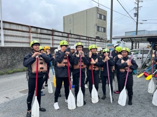 雨も上がり、ライフジャケットを着て、ラフティングに挑戦です。
