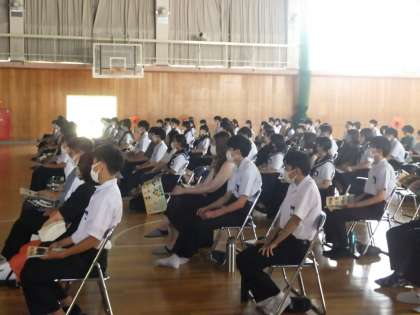 高等学校等説明会を開きました 公開日 2023/06/28 更新日 2023/06/28 校長室から 5校の高等学校等の先生方をお呼びして、高等学校等説明会を開きました。 夏休みを前に3年生にとっては、いよいよ進路選択を本格的に考える時期となりました。 暑い中でしたが、真剣に話を聞く生徒たちが印象的でした。 保護者の皆様にも、多数ご参加いただきありがとうございました。 夏休みの間に、各学校のHPや体験入学などたくさんの学校の情報を集めてほしいと思います。