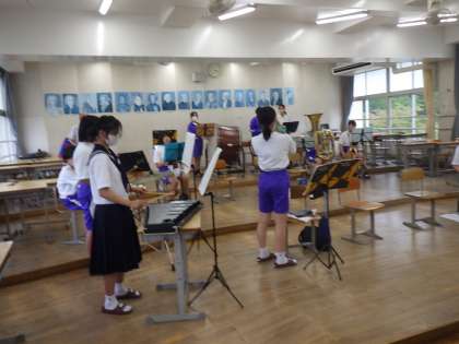 土曜日に豊田市中学校吹奏楽演奏会を終えた音楽部は、夏休みに入ってすぐにある朝日吹奏楽コンクールに向けて練習を重ねています。