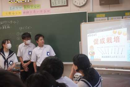 九州地方の農業の特色として見られる「促成栽培」について、班で学習し、学んだことをプレゼンしました。