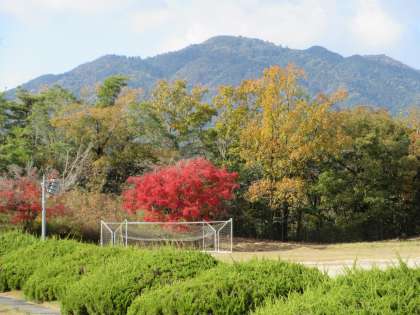 雄大な猿投山をバックに藤岡中学校では、四季折々の風景が楽しめます。