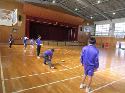 アルティメットに挑戦中(3年体育) 公開日 2023/11/27 更新日 2023/11/27 校長室から 3年生では、アルティメットを学習しています。 アルティメットとは、フライングディスクを使用し、バスケットボールとアメリカンフットボールを合わせたような競技です。 フライングディスクの投げ方を教わったあと、キャッチボールならぬ、キャッチディスクをして基礎練習をしていました。