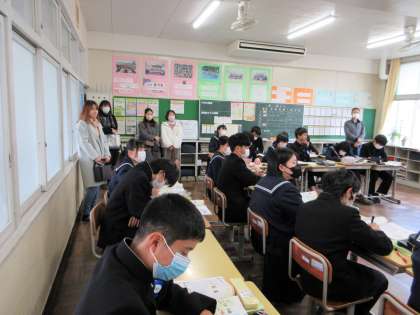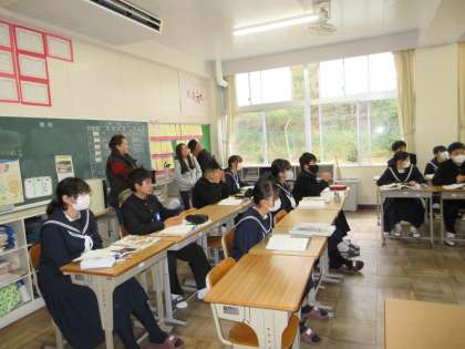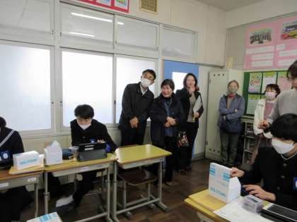 20年以上も学区にかかわっていただいている保護司様からは、「本当に落ち着いた中で、生徒たちが明るく過ごしていることに感謝したい」とお言葉をいただきました。