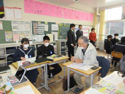 講師の方々は「これからの藤岡(施設、交通、インフラ)」「藤岡の観光名所」「藤岡中学校の魅力」「藤岡のお寺や神社」などの各班からの質問に対して、資料を用意していただき、丁寧にお答えいただきました。