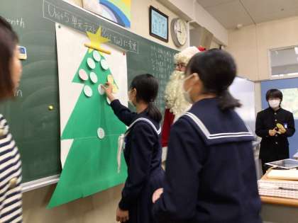 2年生の英語の時間にサンタさんがやってきました。
