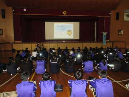 スライドや寸劇を通して、認知症高齢者に対する理解を深めるとともに、地域で認知症の方とその家族を温かく見守り支援する「思いやりの心」を育むことがねらいです。