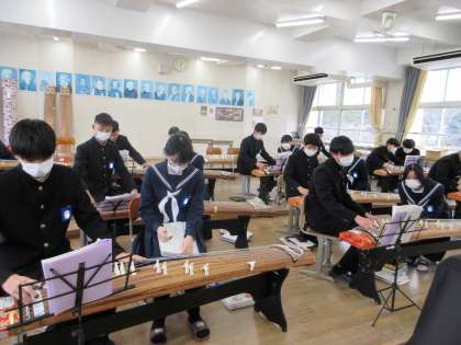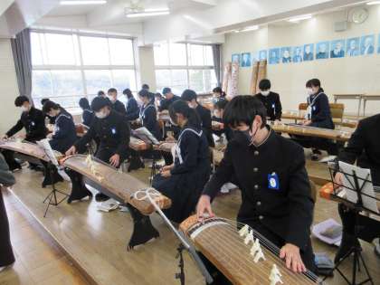 3年生の音楽では、箏で「さくら」「ずいずいずっころばし」の演奏に挑戦しています。