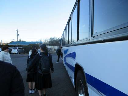 朝、学校にお迎えに来たバスに乗り込み、いざ出陣!