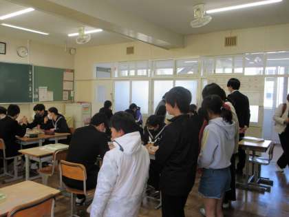 授業参観をしたあと、中1の先輩たちと質疑応答をして交流を深めました。