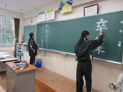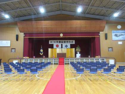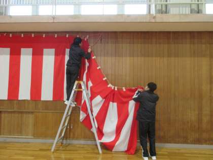 1、2年生が、卒業式の会場準備や校舎内の清掃、3年教室の飾りつけをしてくれました。
