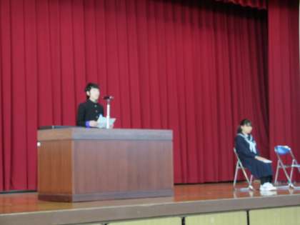 修了式(全校) 公開日 2024/03/22 更新日 2024/03/22 校長室から 令和5年度の修了式を行いました。 どの生徒も背筋を伸ばして、立派な態度で式に臨みました。 校長からは、春休み中に「なりたい自分」を考えて、4月に大きく変われるチャンスを生かしてほしいと話をしました。 各学年の代表が、1年の振り返りと来年度の抱負をスピーチしました。素晴らしい内容でした。 ひとりひとりの生徒に成長を感じることのできた修了式でした。