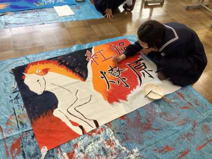 中学校最後の体育祭を盛り上げようと、団旗の製作に取り組んでいます。