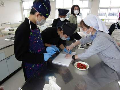 4月23日、26日の家庭科の授業で、イチゴのジャムをつくりました。